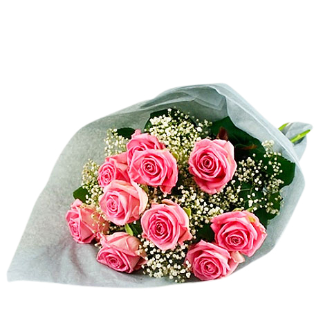 10 stk rosa rosor, brudslöja, silkespapper.