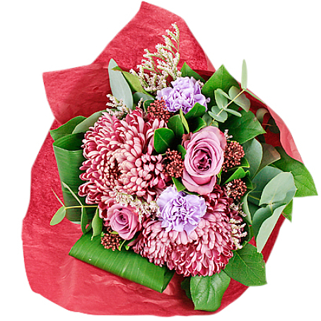 Blomsterbutiken lindar in buketten i fint färgat silkespapper som förgyller buketten lite extra.