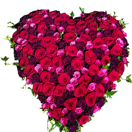 Ett fyllt hjärta 65 cm med rosa och röda rosor.